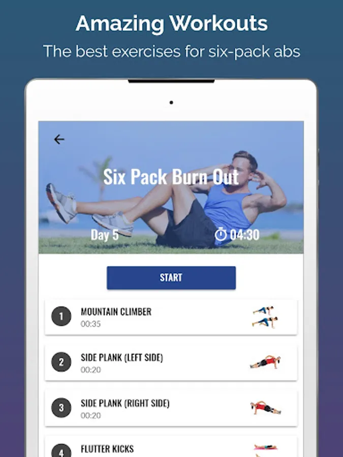 The aim of this workout is to comprehensively train all the muscles of the core (alternating between upper and lower abs) to produce a perfect six-pack.