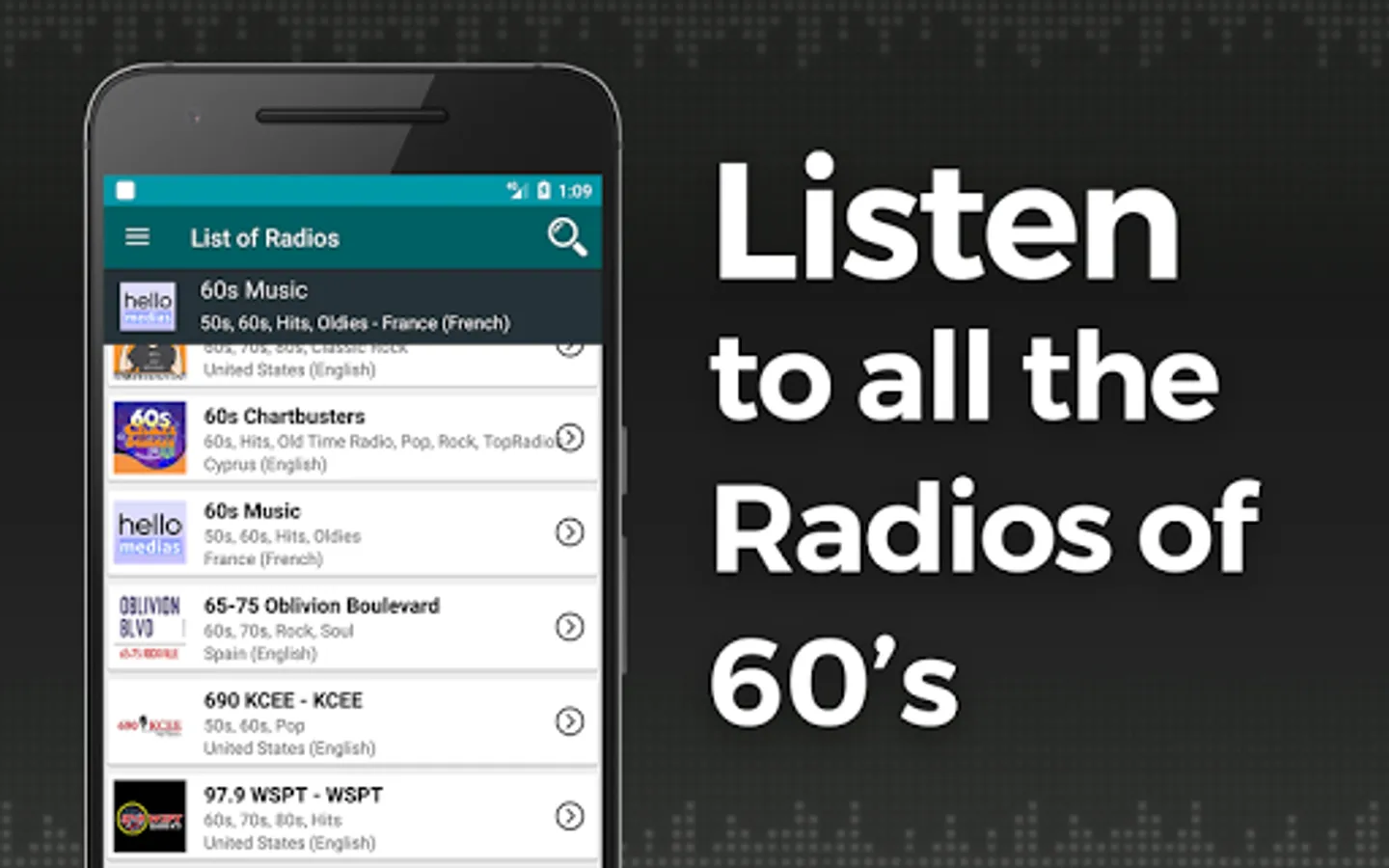 Looking for an app with all the radios of 60s Music? Don't waste your time!! You've found the Radio App you were looking for, listen online the best radio stations of 60s, easily and for Free