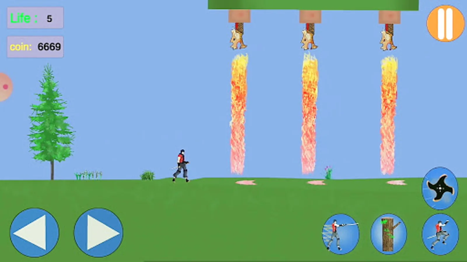 The ninja battle is full of various traps. Cross the traps with your ninja skills. Some of your ninja features are fast sword movement that kills enemies in front of you at high speed. Another feature of yours is the Shuriken throw, which kills enemies from a distance. In sensitive situations, you can hide from the enemy with your special ninja skills and the enemy will not attack you for 7 seconds. and in sword zone you can use sword dash to kill enemy.