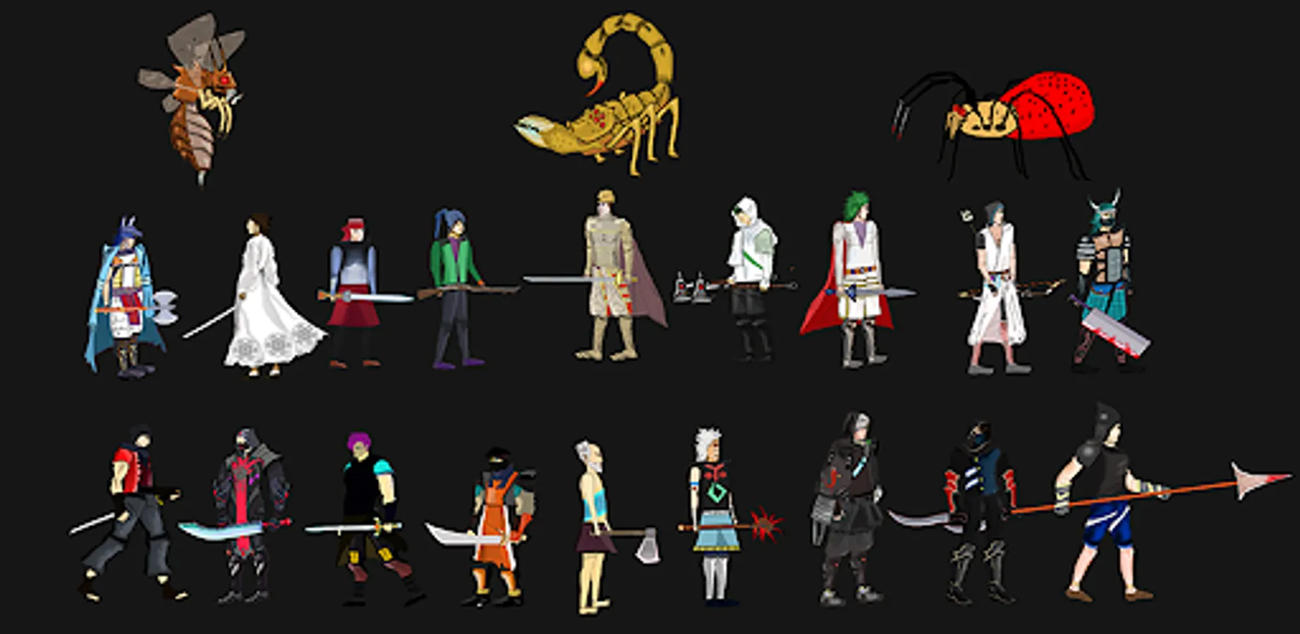 You will encounter various enemies with deadly weapons such as spears, swords, axes, slingshots and rifles during the game. 21 different enemies: