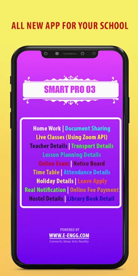 with this app you can access to homework, live classes, online exam, fees module, etc.