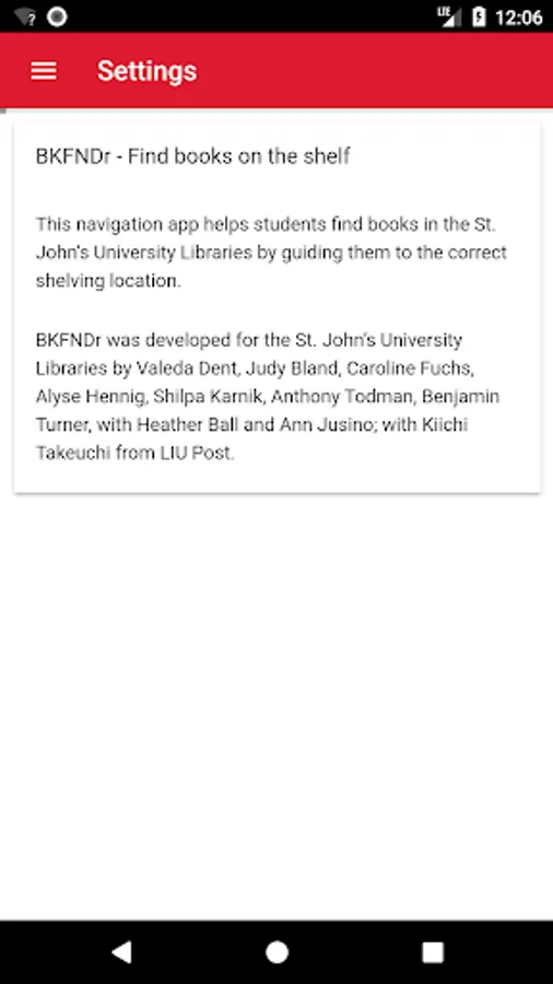 This navigation app helps students find books in the St. John’s University Libraries by guiding them to the correct shelving location.