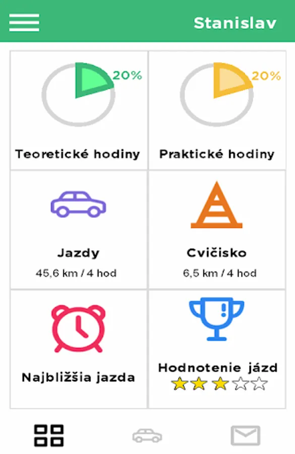 Mobile app Driving School pupil driving schools offer pupils information about the course of their training. Students get an overview of completed lessons and rides. Driving can be viewed in a list or directly on the map, where the student sees its full course. Part of the mobile app can be a driving style assessment of the student that he can provide feedback on how their driving. Pupil can use the mobile app and two-way communication with the instructor.