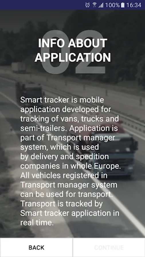Smart tracker is mobile application developed for tracking of vans, trucks and semi-trailers. Application is part of Transport manager system, which is used by delivery and spedition companies in whole Europe. All vehicles registered in Transport manager system can be used for transport. Transport is tracked by Smart tracker application in real time.