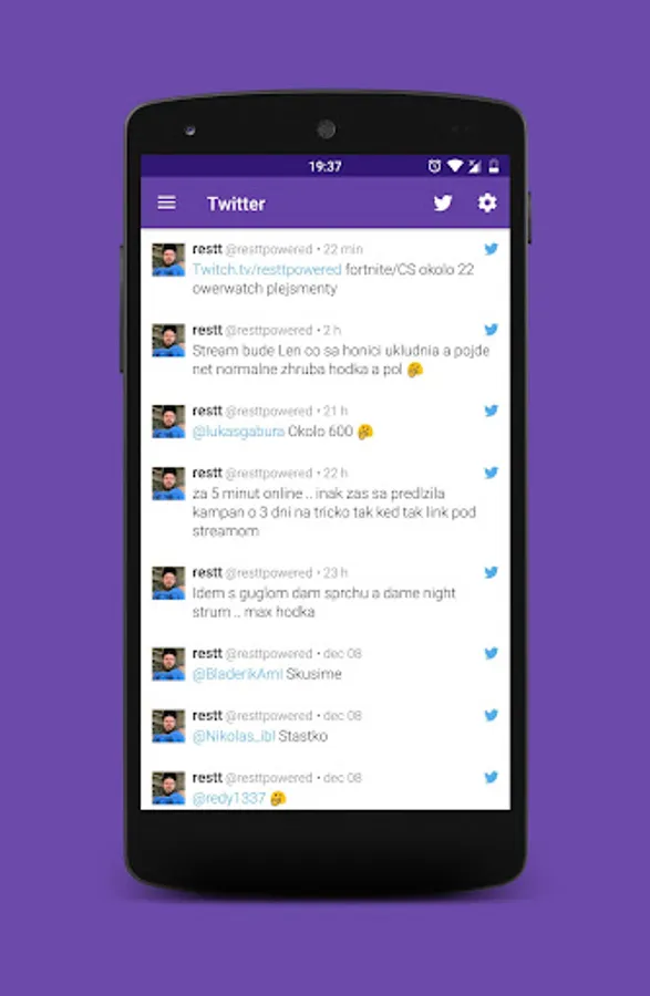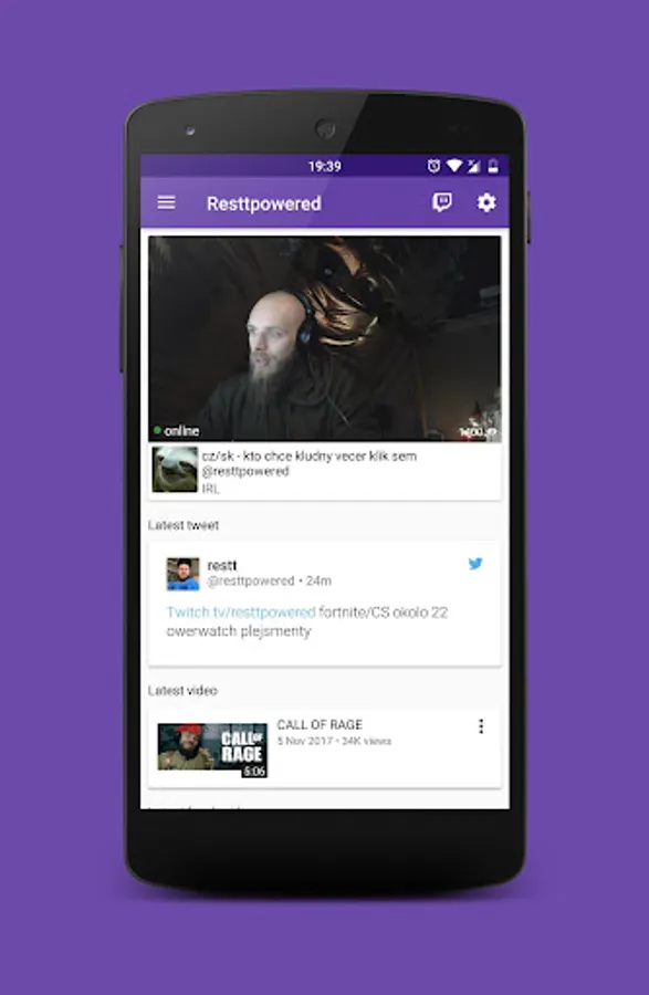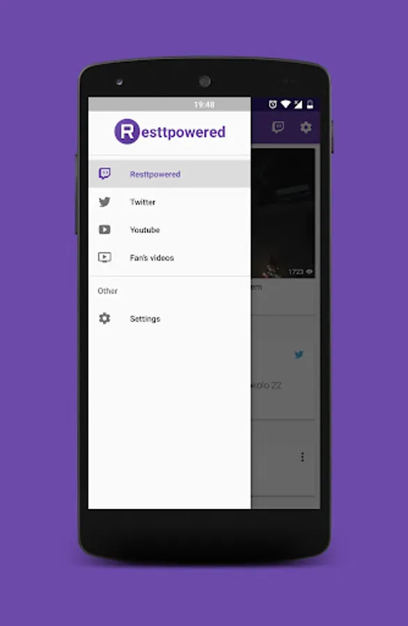 Application for a fans of the streamer "Resttpowered". A fan with this app gets a complete overview of the latest tweets, official videos, and fan's videos.