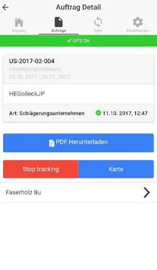App for digital order processing in the wood harvest of the HLV