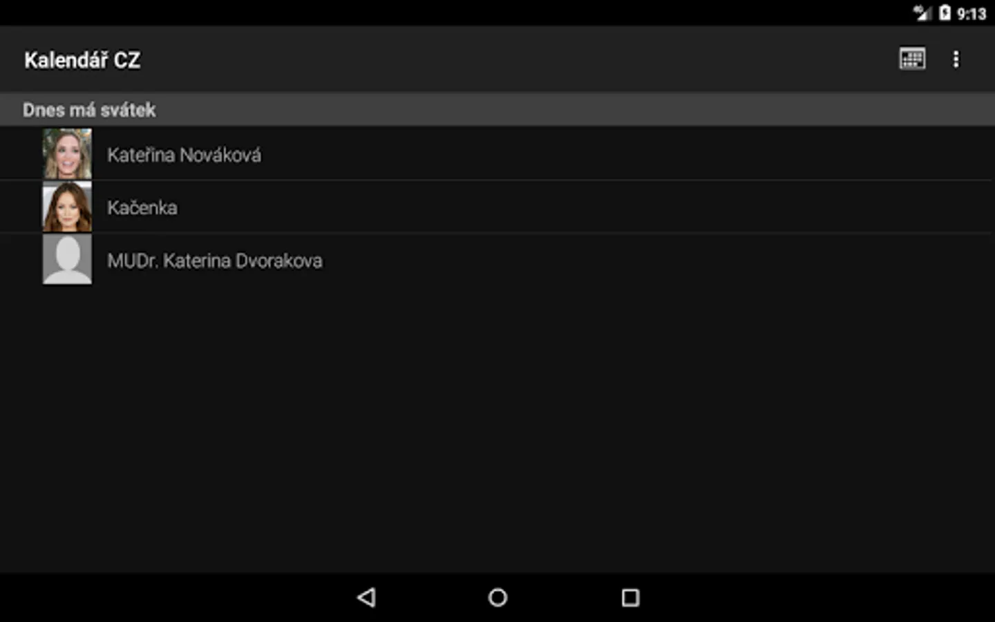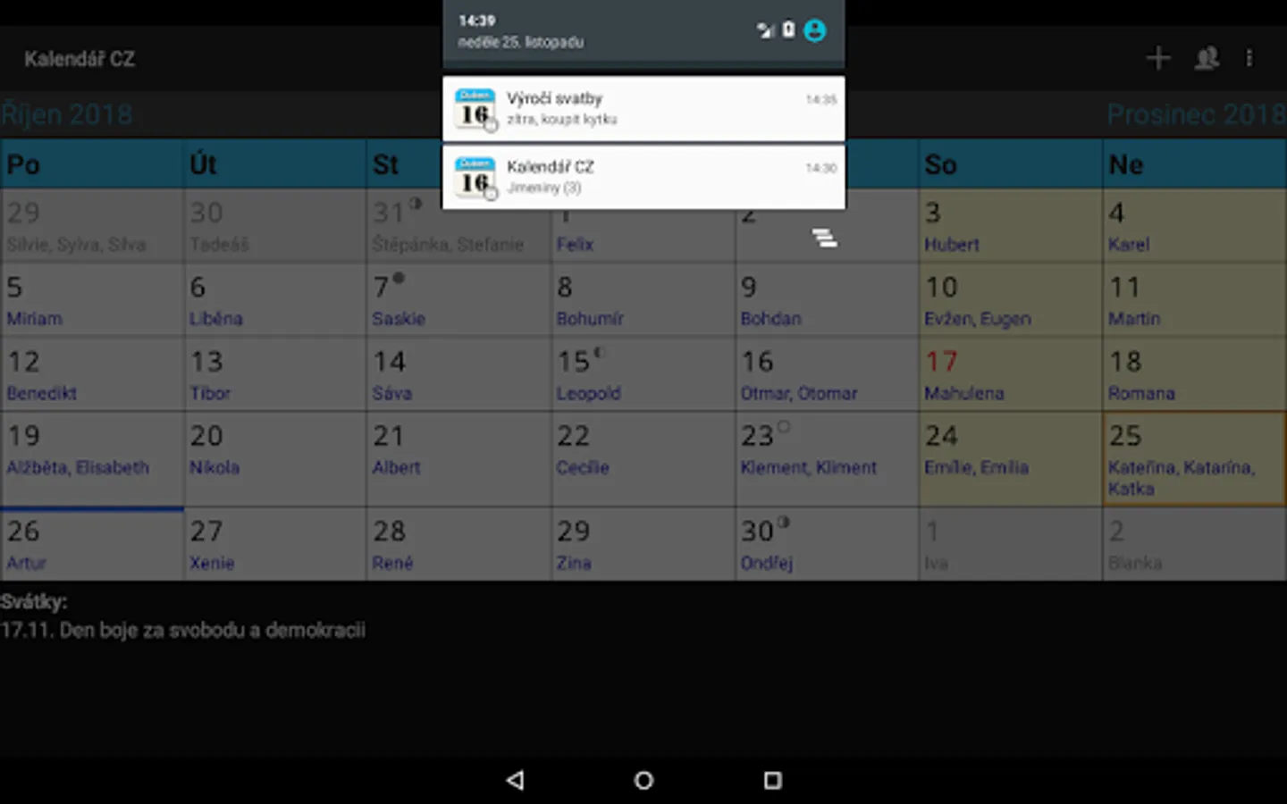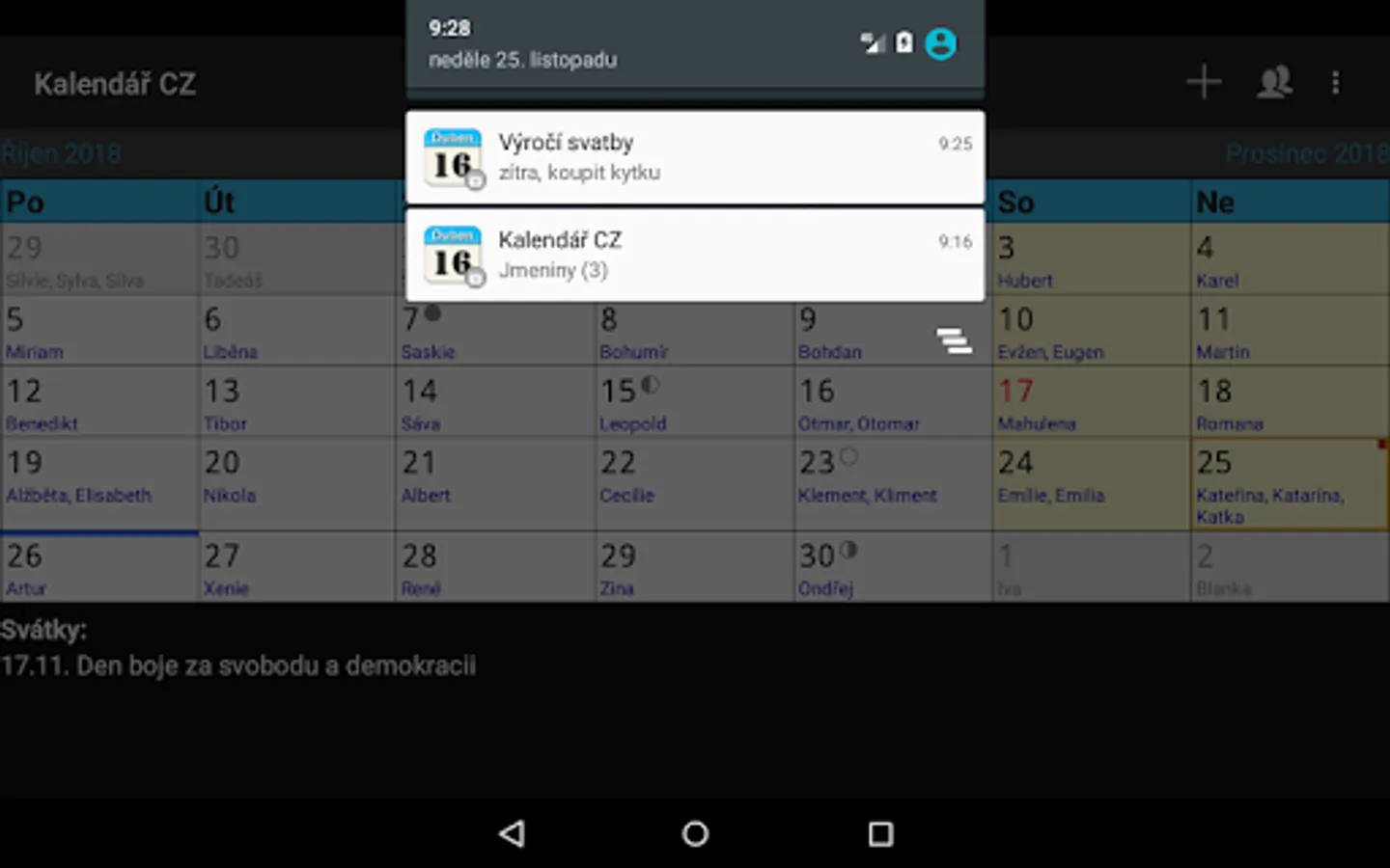 Application "Kalendar CZ" (Czech calendar with public holidays, name days and school vacation) in Czech language only.