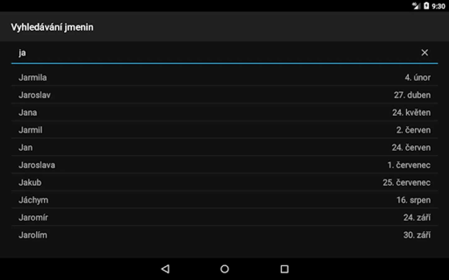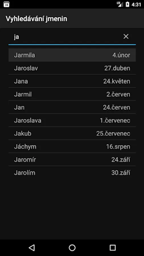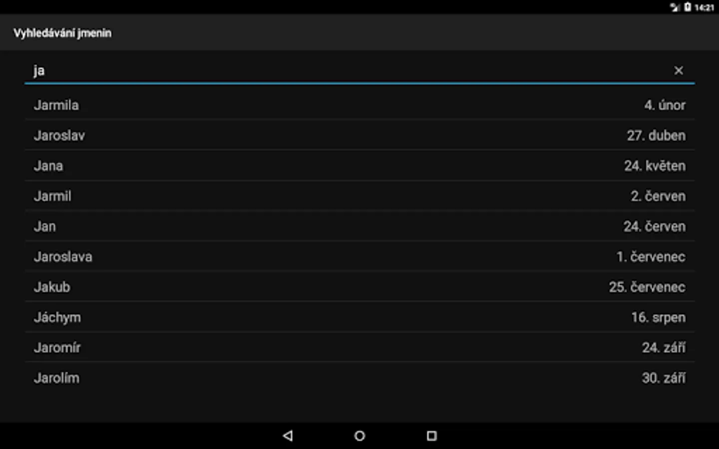 Application "Kalendar CZ" (Czech calendar with public holidays, name days and school vacation) in Czech language only.