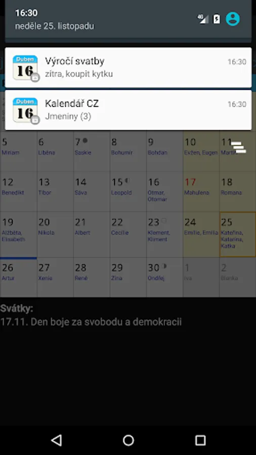 Whether it's a wedding anniversary, a celebration or an important meeting - Kalendář CZ will alert you to them in a clear way.