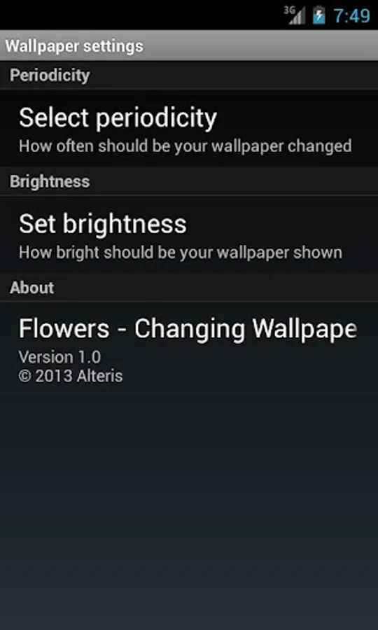You can select how often the new picture will be shown and adjust the wallpaper brightness.