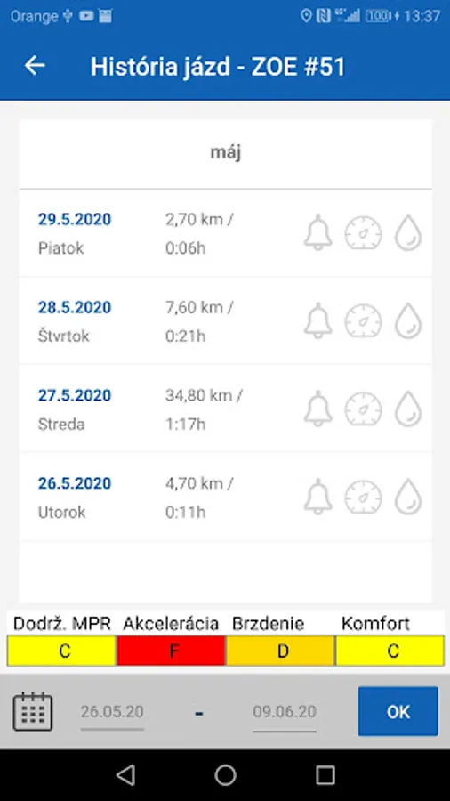 • TABLE OVERVIEW OF DRIVING HISTORY - possibility to view the history of driving journeys by individual days