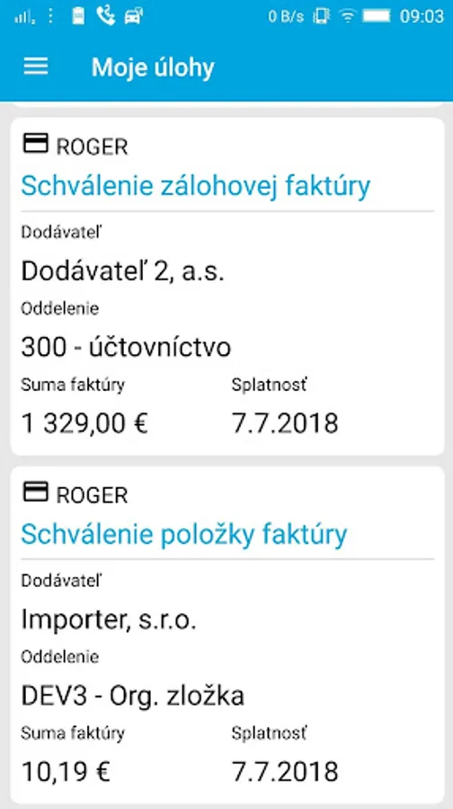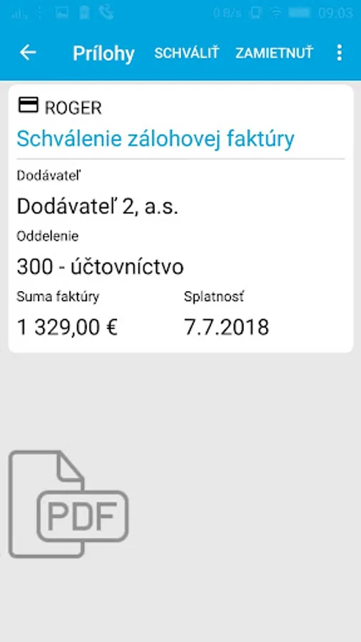 It also allows viewing attachments (e.g. scans of supplier invoices) or inserting a note or comment. Tasks are displayed from the system in real time, as well as their approval, which is immediately recorded online.