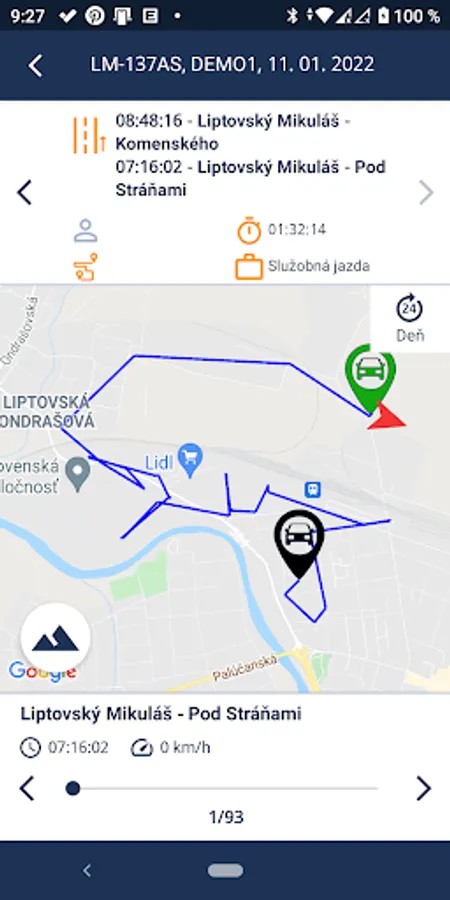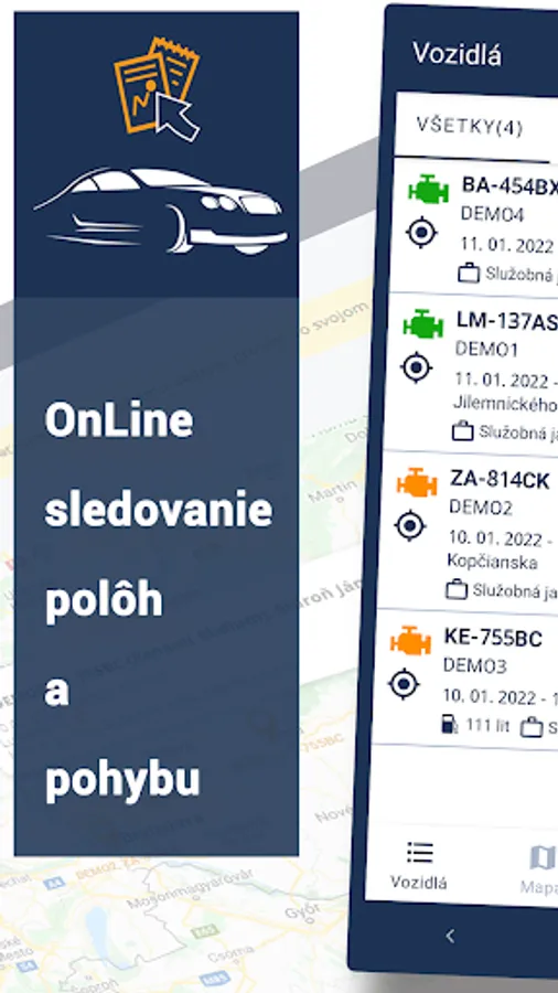 Free mobile version of the monitoring system of the company DeMoTech s.r.o., which is used for online tracking of motion and display of vehicle journeys.