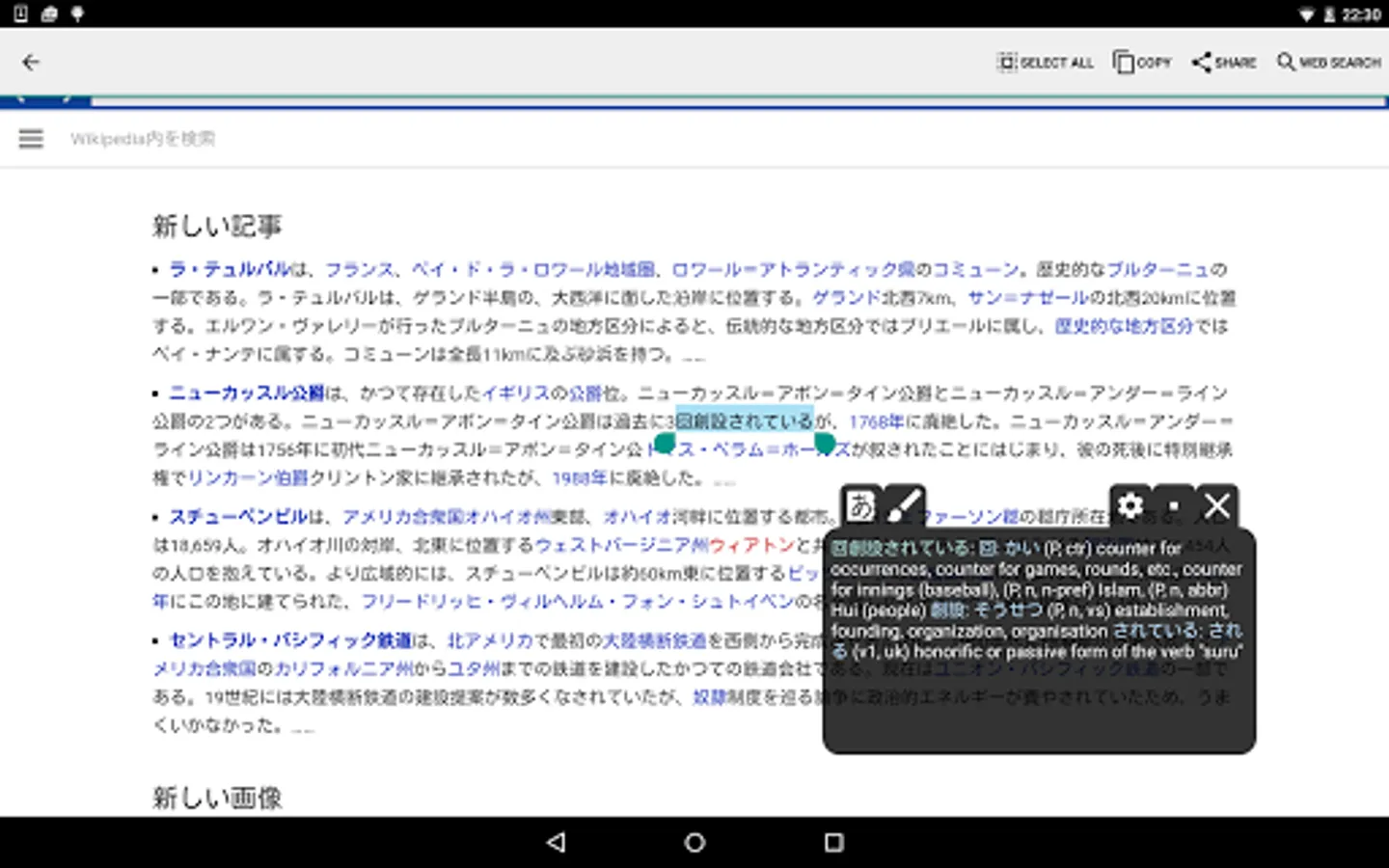 WARNING: Requires Aedict3 to be installed on the device. The Reader's integrated KanjiPad requires the Aedict KanjiPad Ext application to be installed on the device.