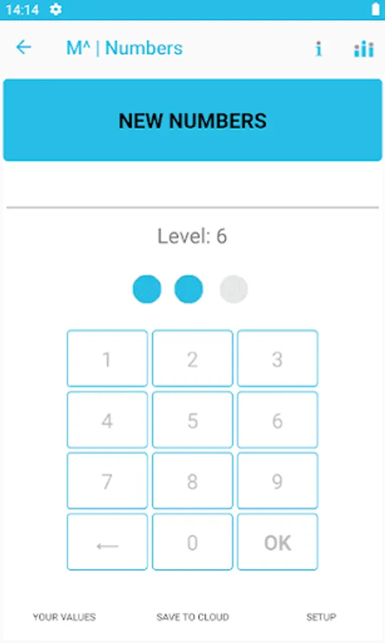 6 digits are randomly generated. You remember them and enter them back into the system. If you are successful, you get a point. Three good points will move you to level no. 7. An incorrectly entered number will take your point away, which may return you to a lower level. My record is level 12.