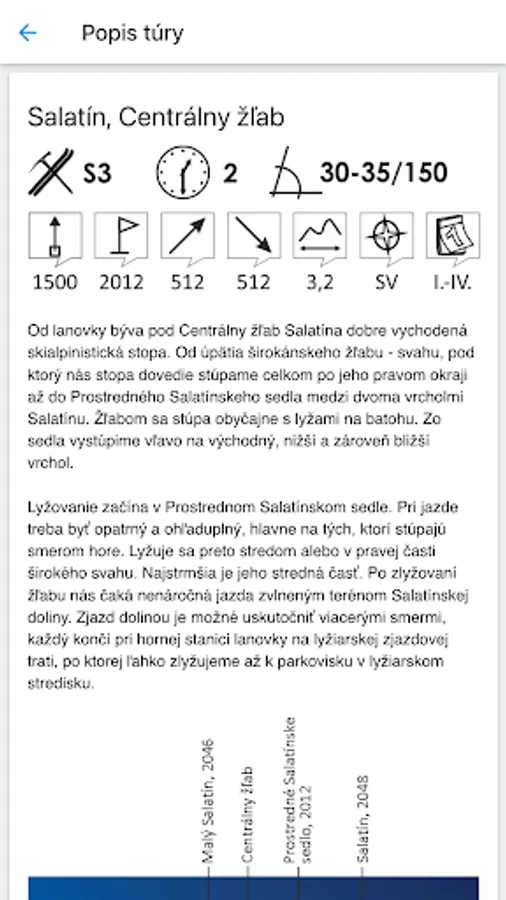 The SKIALP TÚRY - Roháče application serves as an aid for orientation in the terrain and as a warning against the possible release of an avalanche.