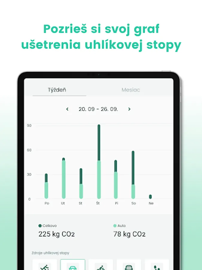 With the Way2Eco application, you can track the amount of your carbon footprint. With the help of graphs, you can compare your amount of CO2 on individual days or months, and at the same time you can compare with application users or colleagues. Way2Eco also offers companies the opportunity to participate and compete with employees compared to other companies.