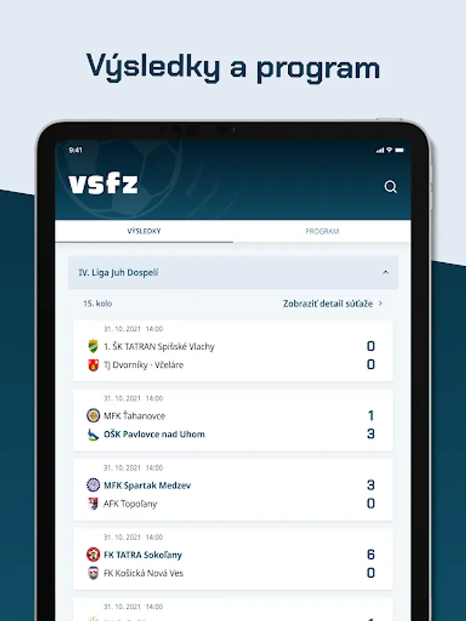 Choose from the list of competitions (leagues) of the East Slovak Football Association and watch the latest match results or their nearest program.