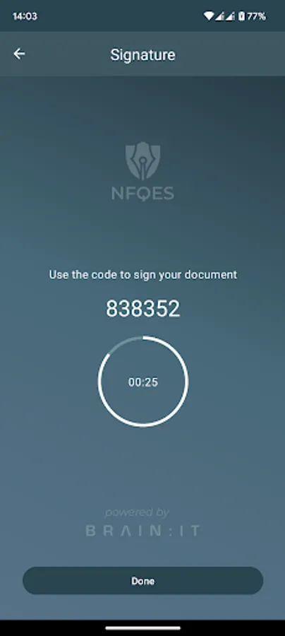 The application is used for two-factor authentication when signing as part of the provision of qualified trust services in the sense of eIDAS registered in EU Trust Services. The application can only be used in relation to NFQES products from brainit.sk, s.r.o. . eIDAS is an abbreviation for European Union regulation no. 910/2014 on electronic identification and trusted services for electronic transactions in the internal European market. The company brainit.sk, s.r.o. (NFQES product) is a provider of trusted services in the sense of the eIDAS Regulation, as well as Act of the Slovak Republic no. 272/2016 Coll. on trusted services ("DS Act"). In addition to the basic level, NFQES also provides trusted services at the highest level (qualified level), which provides users with a higher level of security, but also legal certainty. The application works as a challenge-response authentication (challenge-response authentication), so a signature request is created in the NFQES mobile application or the zone.nfqes.com web application, which generates a challenge, this challenge is entered into the NFQES Authenticator application