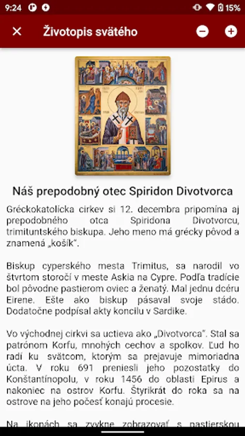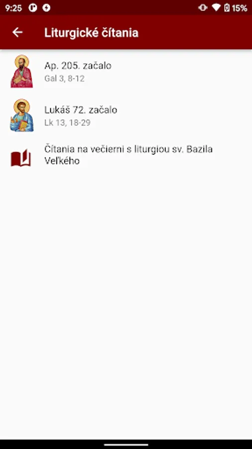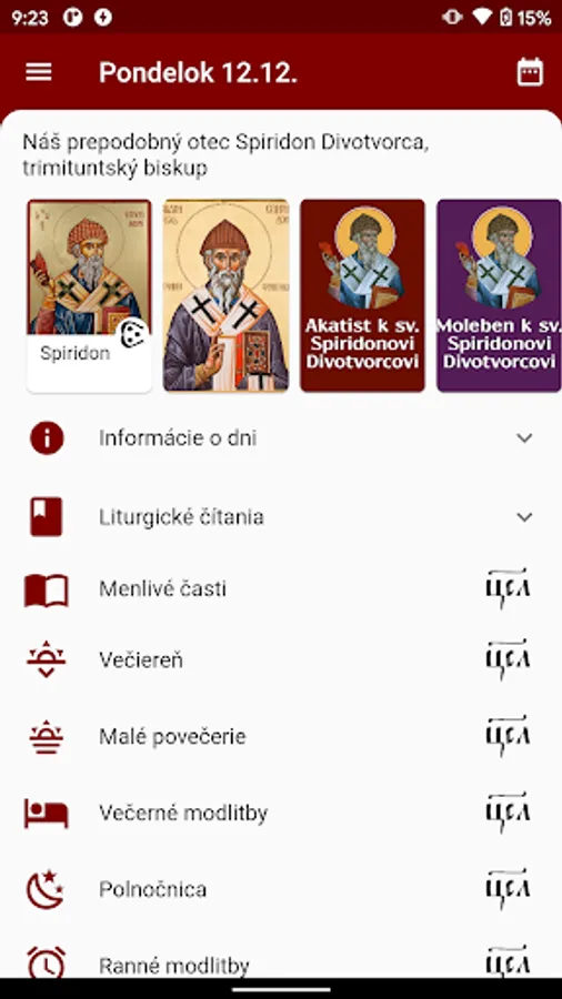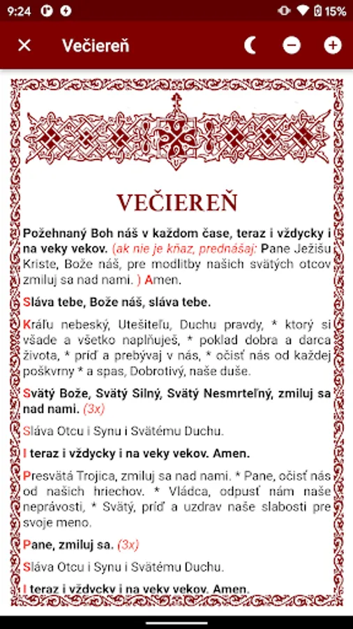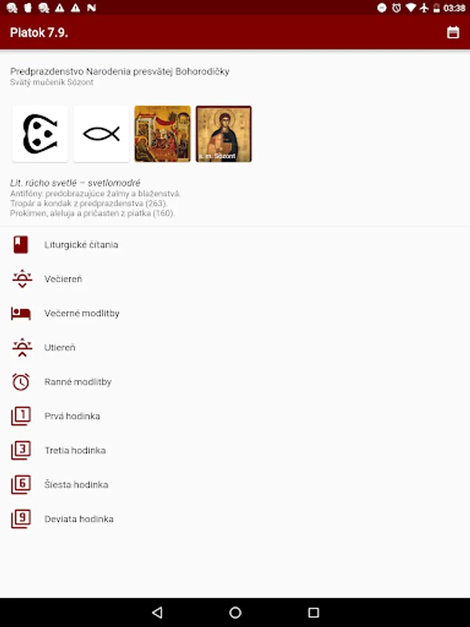Application designed for continuous prayer of sanctification of time in the Byzantine Rite in Slovak.