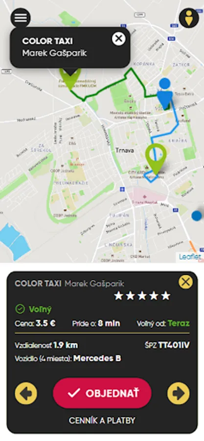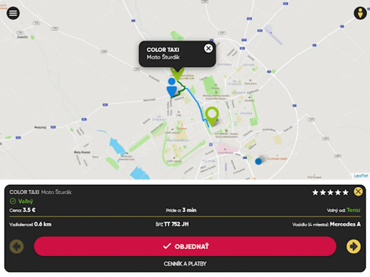 In the application, you simply choose the pick-up point where you want to call our taxi, and the application will find the nearest free car that knows about you immediately. You can communicate directly with the driver by phone. After receiving the order, you will see a button to call the driver directly to the car. After confirming the ride with the taxi driver, you can see him on the map and follow his arrival.