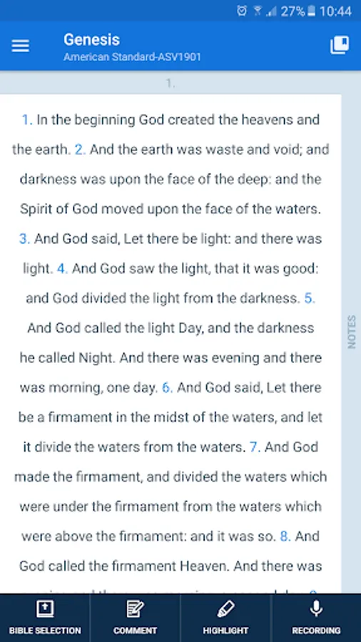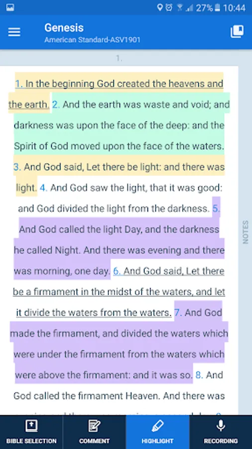 - Add comments to individual verses. They will be marked as underlines in your Bible's text.