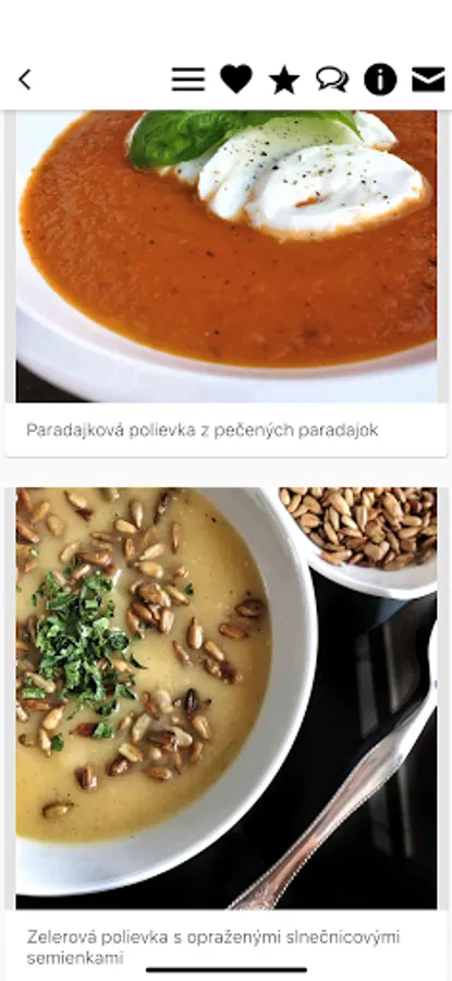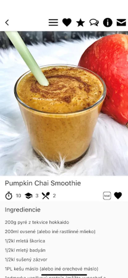 The application also has the option to purchase calculated calories for all recipes. After purchase, you will find under each photo of the recipe the total calorie content per serving together with the calculated values of macronutrients - proteins, carbohydrates and fats.