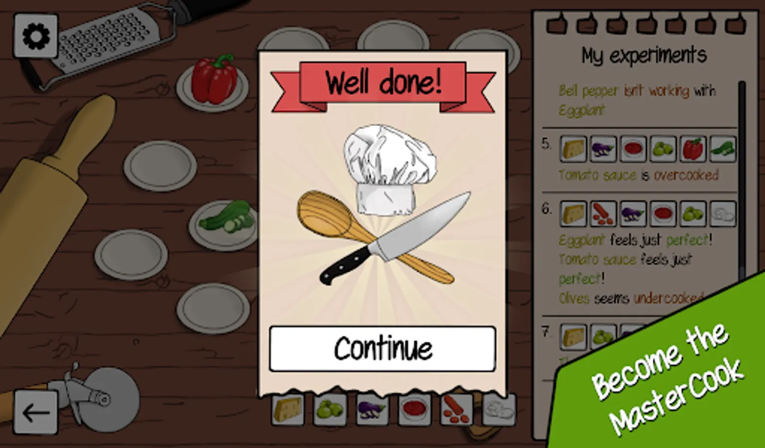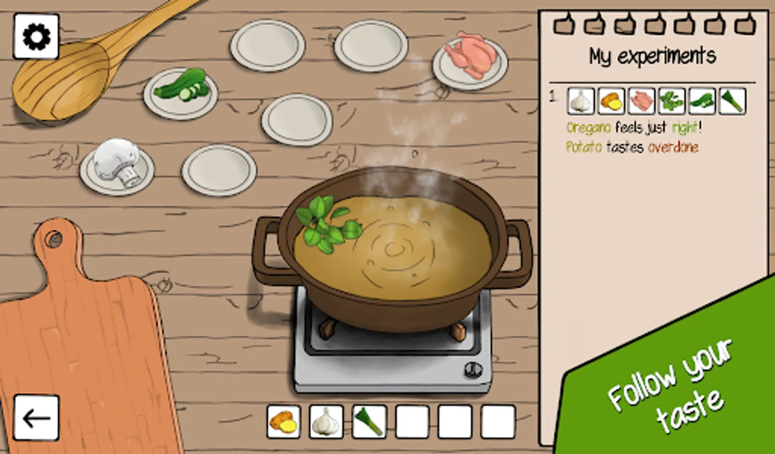 Each level represents a randomly generated recipe and your job is to try out different combinations of ingredients. For each attempt, you'll get a feedback telling you what went wrong and which ingredient you should correct. Each recipe takes a few minutes to complete, and the difficulty gets higher and higher as you progress.