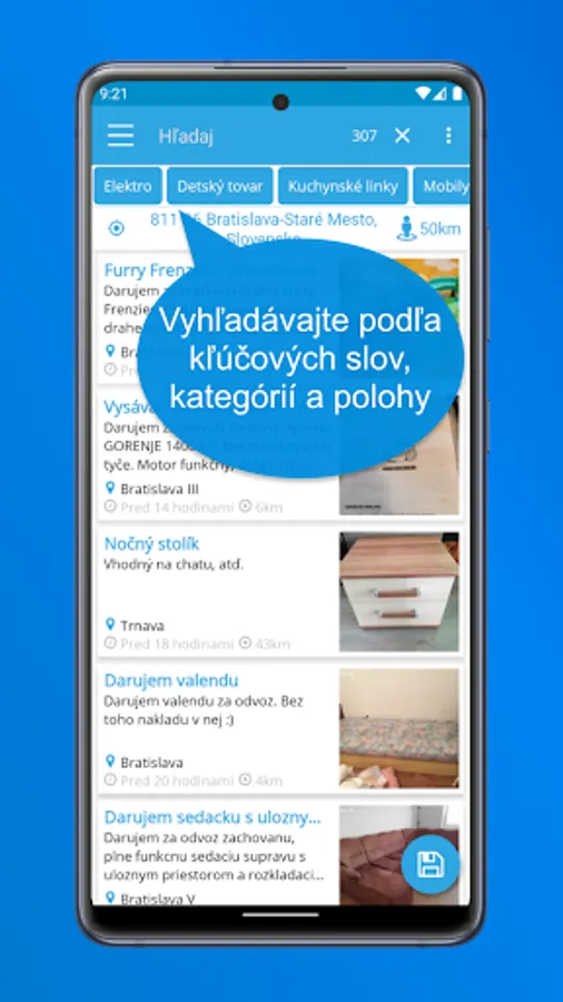 Searching and browsing for new ads at the same time by location and distance, categories and key words, allows you to find exactly what you need.