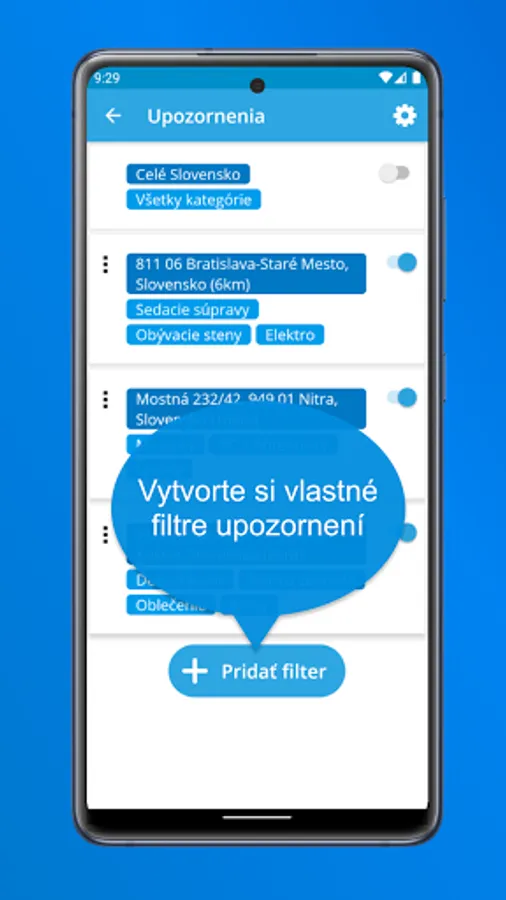 Set up new ads notifications by region, category and keyword.