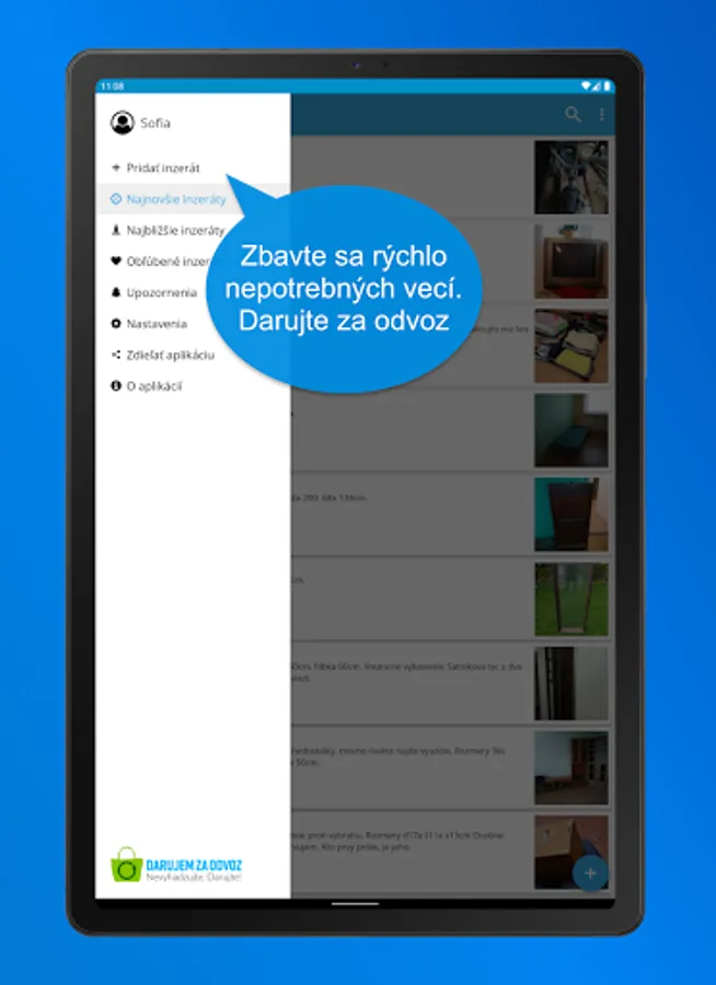 With the "Donate for Pickup" app, you can donate , get get free stuff at the pick-up price, and watch the latest ads on za-odvoz.sk - inzerce things for transport.
