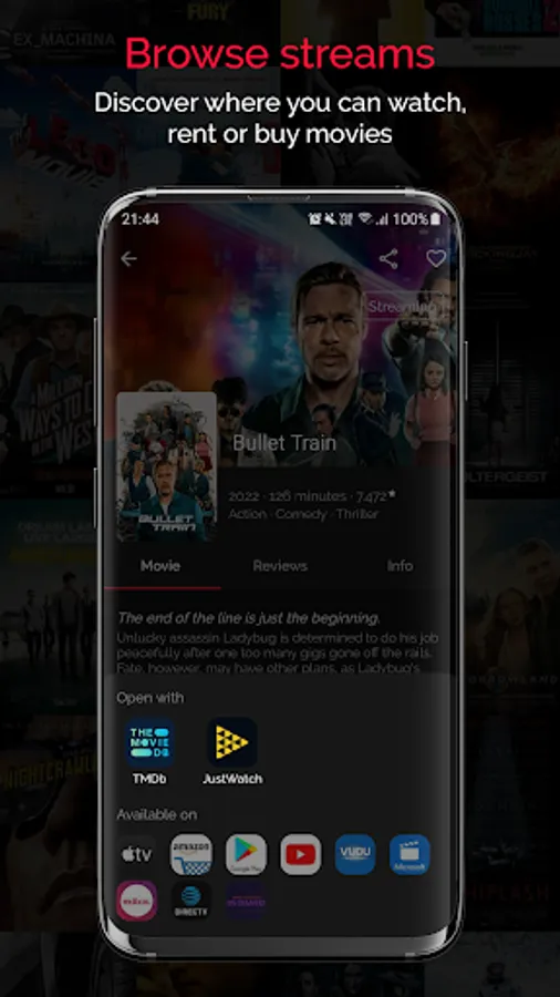 Watch trailers, rate movies and track what you want to watch or you've already seen.