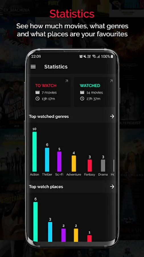 Create unlimited number of your personalized lists along with favourites movies, celebrities and production companies. See detailed statistics of your watch lists and what genres or places you prefer the most.