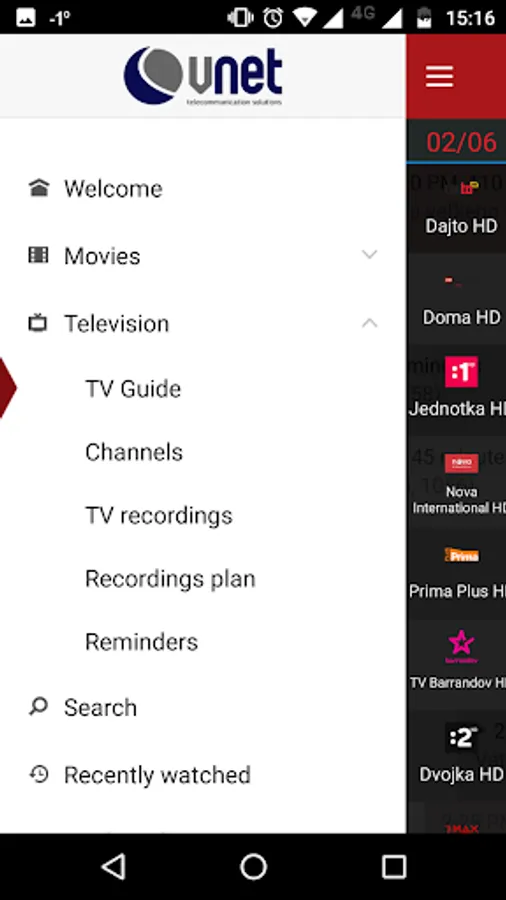 *The app is an added service to TV services of Digital TV of VNET a.s.