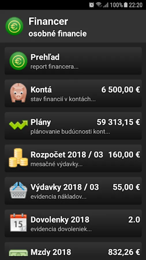 Keep track of accounts, enter their conditions, plan your future accounts, define your monthly budget and administrate get your paycheck and leave