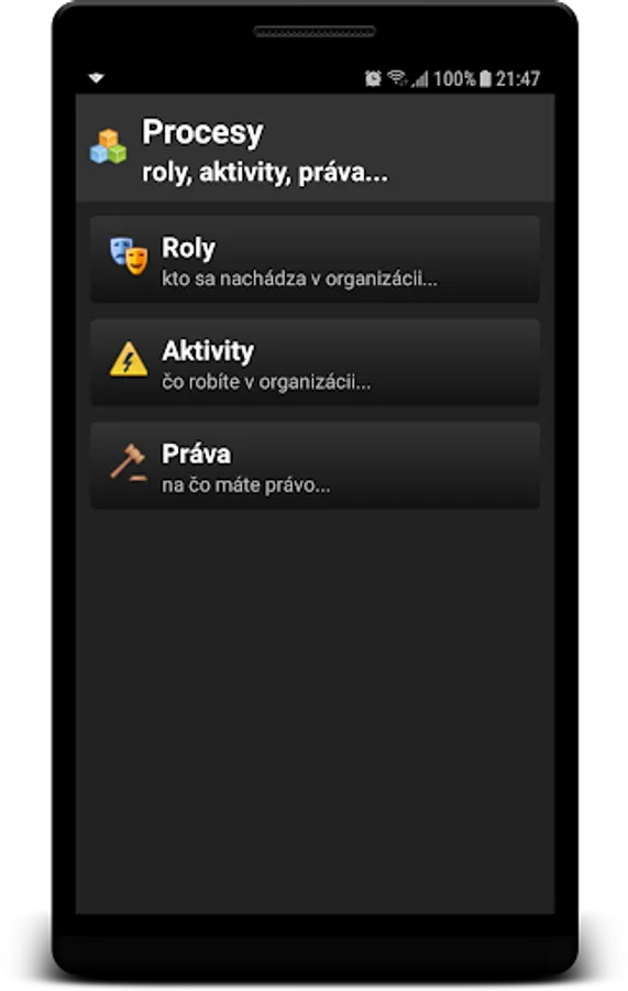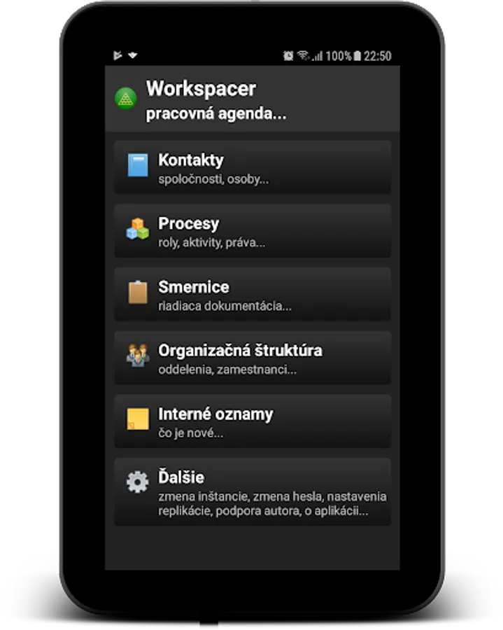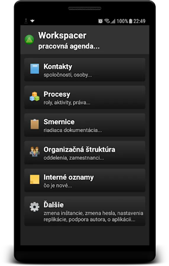 Enter contact - companies and people, define processes based on roles and activities, manage directives and organisation structure - departments and employees, enter internal notices...