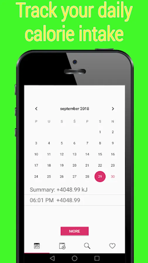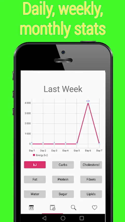 And not only that. It consists more than 5 000 hand-picked foods which shows the food's calorie info in Kj and Kcal, as well as Protein, Lipids, Carbs, Fiber, Sugar, Fat, Cholesterol and Water in grams. You can also add your own food and info if needed.