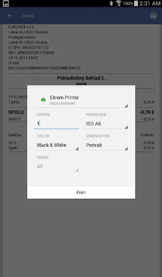 Mini Printers elcom are small portable bluetooth printer designed to print cash vouchers from CA - virtual cash register for standard 58 mm wide thermal paper.