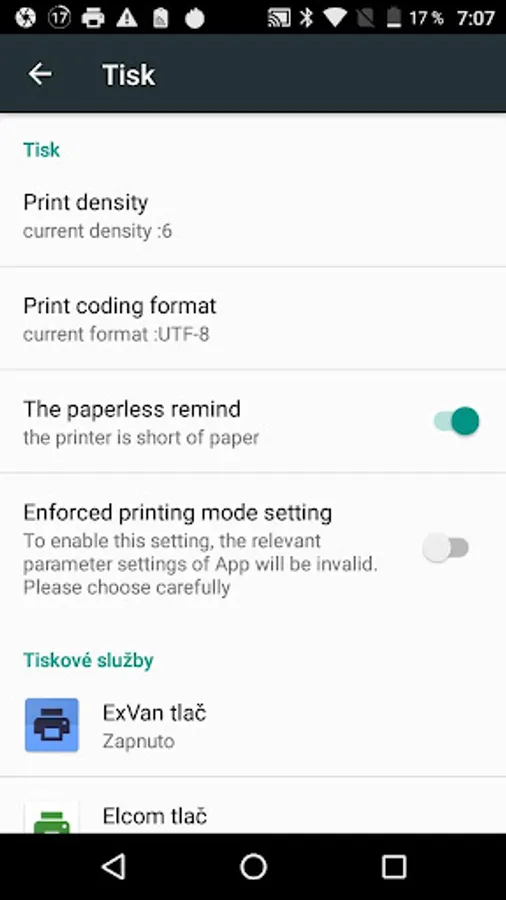 The printing service is intended only for ScanPOS T1 devices distributed by Elcom s.r.o.