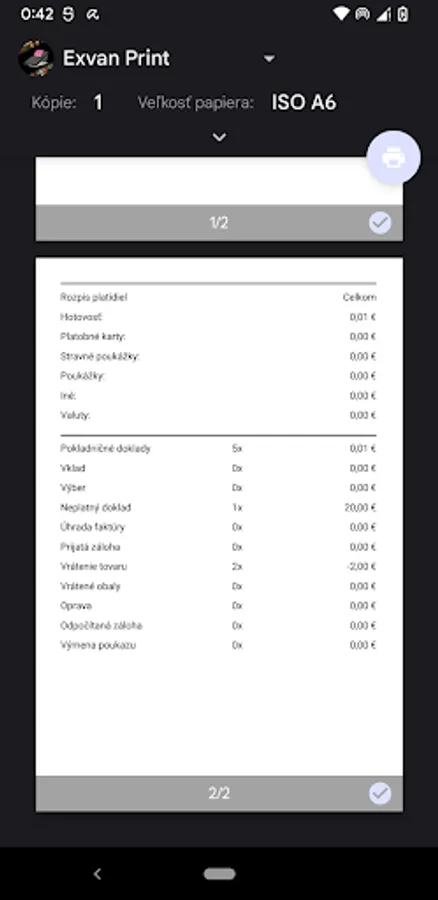 The printing service enables the printing of documents from VRP and VRP 2 - virtual cash register for ExVAN printers.