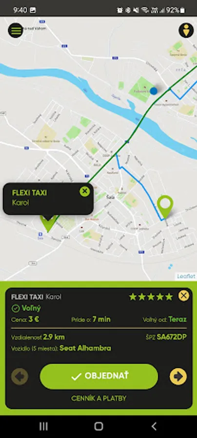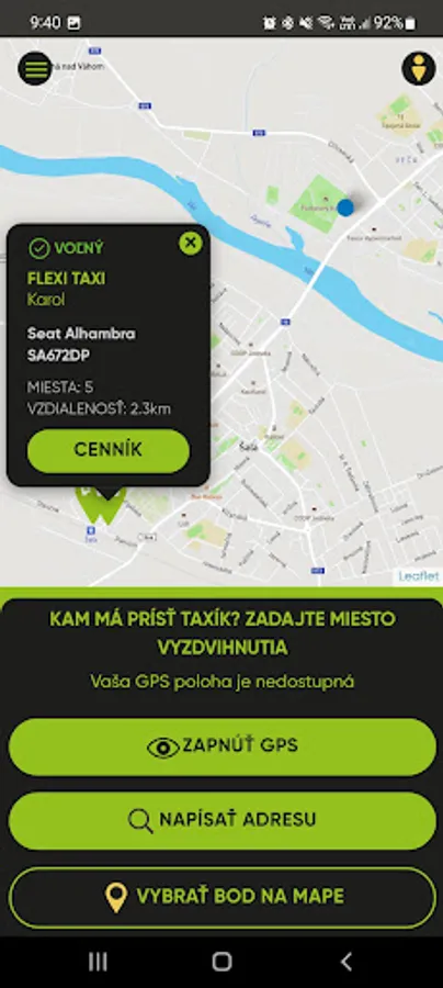 Automatizovaná platforma online dispečingu v meste Šaľa. Vždy vidíte aktuálne voľné vozidlo aj cenu jazdného vopred.