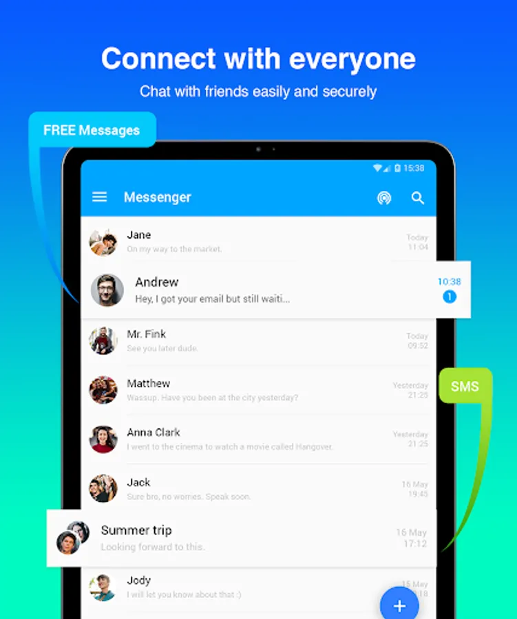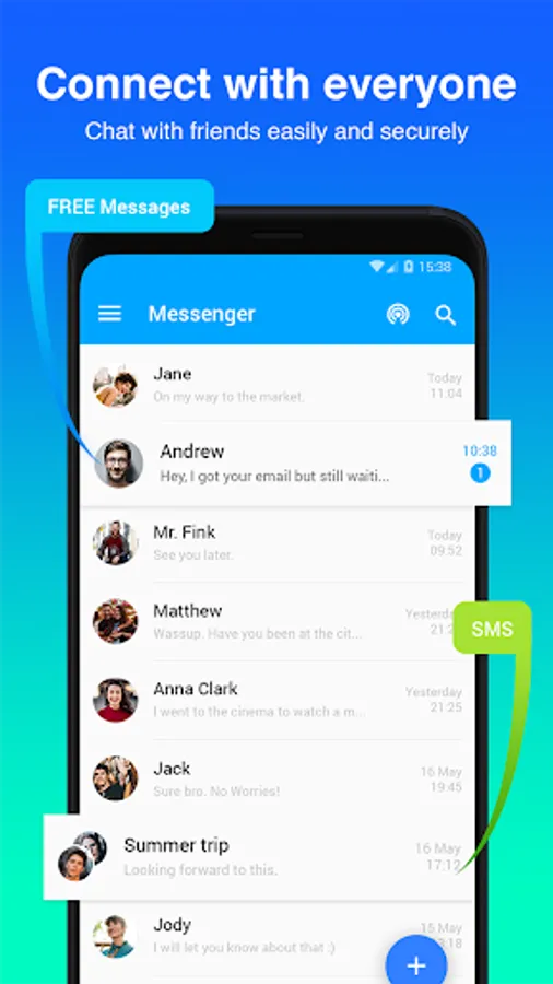 Our Mint Messenger is simple and secure messaging and SMS app. You can connect with people everywhere, send SMS, MMS or Free Messages (depending on your data rates) in one app. Say it with Video and Voice Messages and share your moments. Get access to the world of chat and communication with simple, fast and secure messaging app. Data plan or Wi-Fi connection is required for switch from SMS to Free messages.
