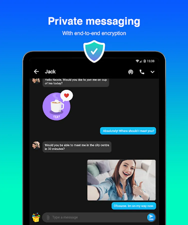 Send text messages, voice messages, video messages with all your friends and family easily, quickly and securely.