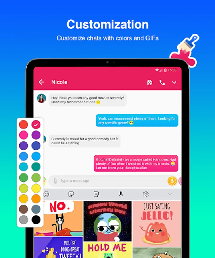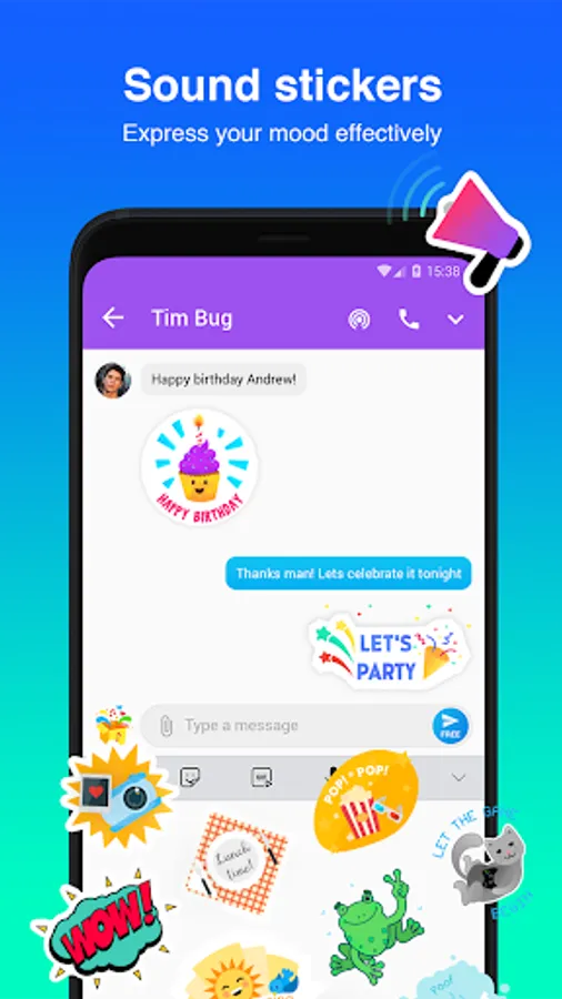 Express more with Sound stickers, GIFs or Emojis. Send and receive stickers with sound notifications. Surprise your friends and give your messages emotions. It's easy and fun.