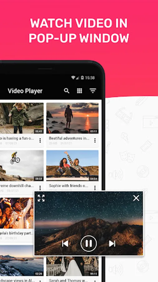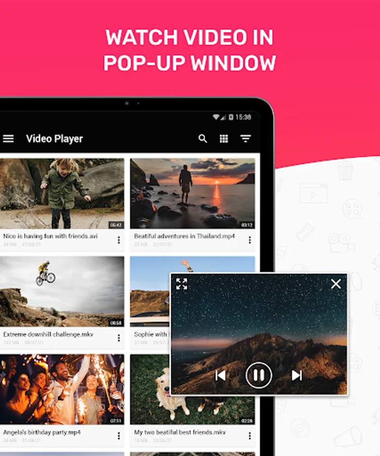 Video and Media player app for best experiences on your android phone and android tablet. Powerful features and beautiful design. Supports all video formats 4K or HD video files and much more. User Interface with various customisation included floating video player and file manager is focused on quality user experience. Pin lock included to protect your private videos.