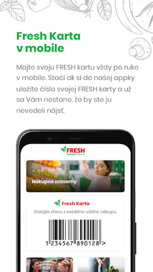 FRESH card in your mobile - always have your FRESH card in hand. Just save your FRESH card number in our app and you will not be able to find it. When paying, simply open the app and the operator will scan the FRESH card code from your phone's display.