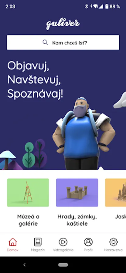 The Guliver application allows its users to easily navigate the tourist attractions in Slovakia. It brings them many benefits, easier navigation and orientation in the menu, creates a social network of discoverers and travelers.