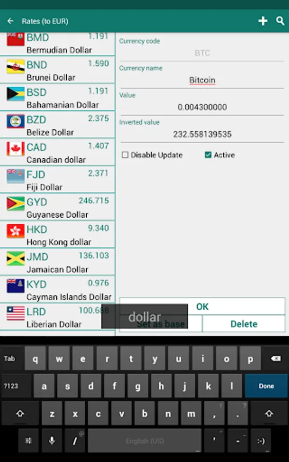 - online update is provided via European central bank, Additional sources, RSS feeds or you can manually add any custom currency