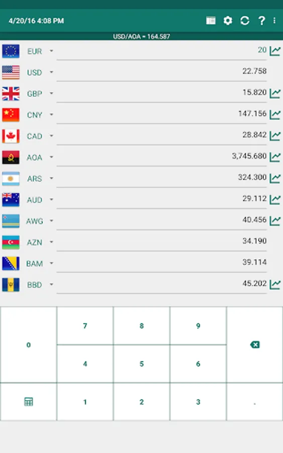 Do you wish to do some math with the numbers? No problem - use built-in calculator. Result will be automaticaly converted to all currencies. Can't find your currency? Just add it as a new currency code and simply run update. App will download it's name and fresh exchange rate. From now on it will always auto-update.
