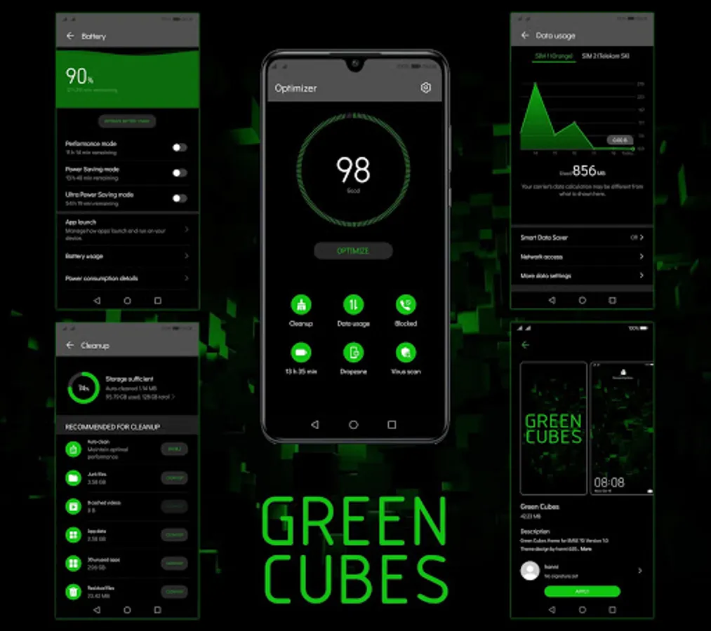 Green Cubes Theme for EMUI 10 is not compatible with other versions of EMUI.